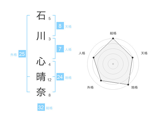 石川 心晴奈さんを姓名の画数から五運を鑑定