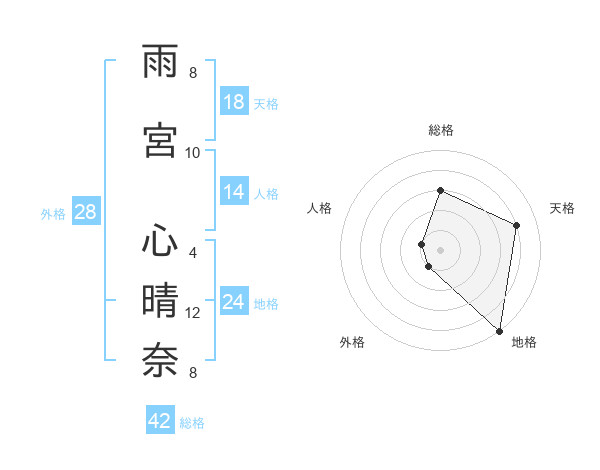 雨宮 心晴奈さんを姓名の画数から五運を鑑定