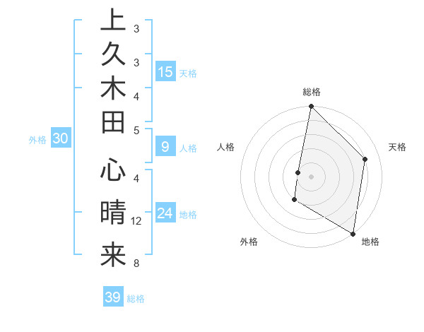 上久木田 心晴来さんの総格は39画の5点!