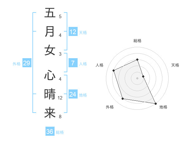 五月女 心晴来さんを姓名の画数から五運を鑑定
