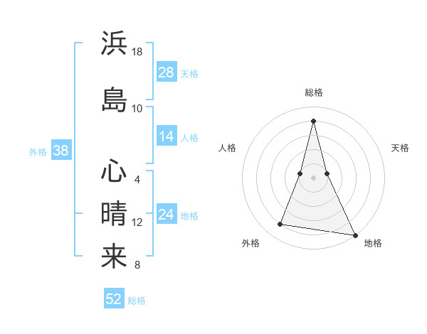 浜島 心晴来さんの外格は38画の4点