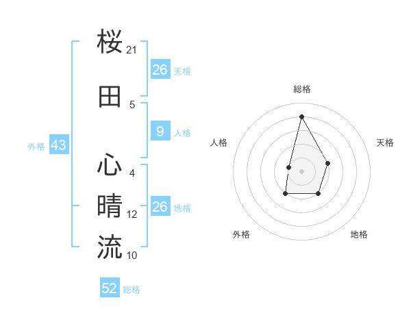桜田 心晴流さんを姓名の画数から五運を鑑定