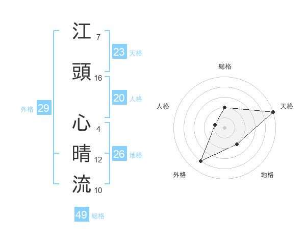 江頭 心晴流さんの総格は49画の2点!