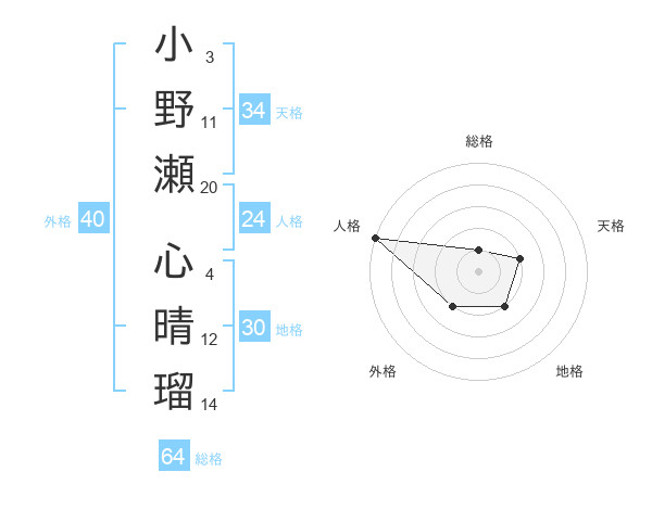 小野瀬 心晴瑠さんの総格は64画の1点!