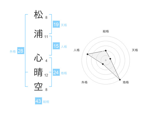 松浦 心晴空さんを姓名の画数から五運を鑑定