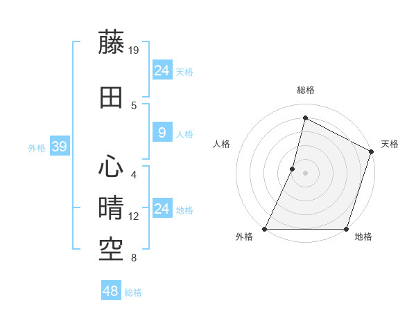 藤田 心晴空さんの外格は39画の5点