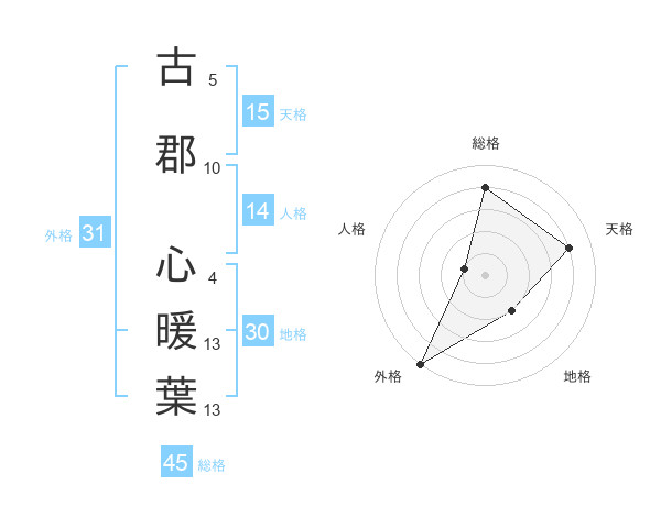 古郡 心暖葉さんを姓名の画数から五運を鑑定