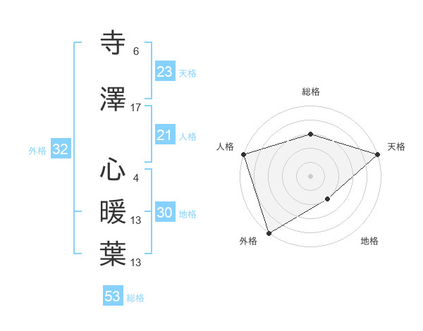 寺澤 心暖葉さんを姓名の画数から五運を鑑定