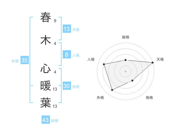 春木 心暖葉さんを姓名の画数から五運を鑑定