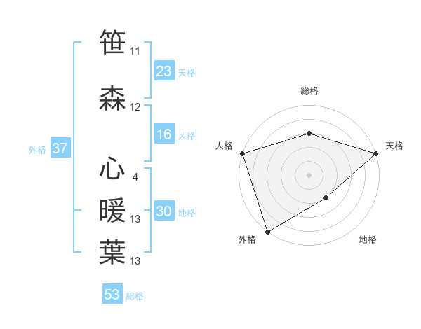 笹森 心暖葉さんを姓名の画数から五運を鑑定
