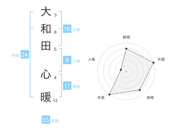 大和田 心暖さんの総格は33画の4点!