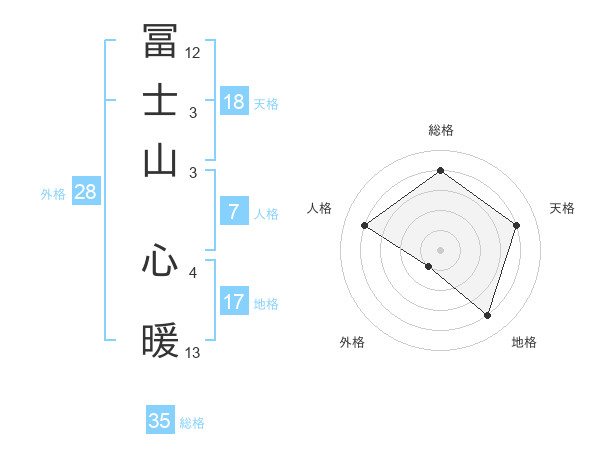 冨士山 心暖さんを姓名の画数から五運を鑑定