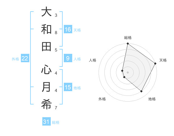 大和田 心月希さんを姓名の画数から五運を鑑定