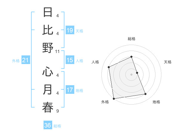 日比野 心月春さんの外格は21画の5点!