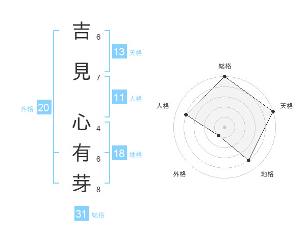 吉見 心有芽さんを姓名の画数から五運を鑑定