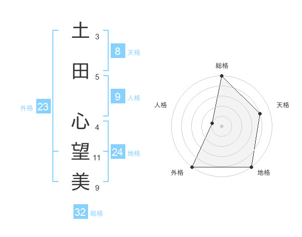 土田 心望美さんの総格は32画の5点