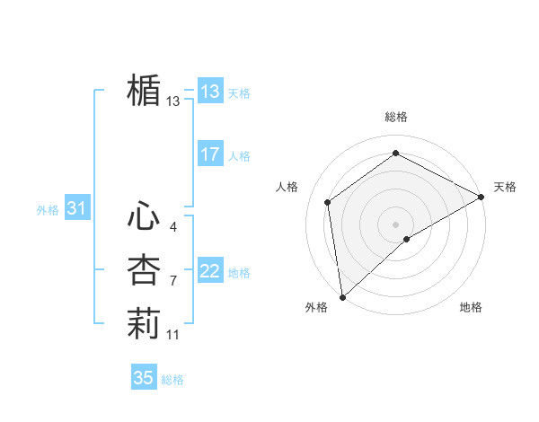 楯 心杏莉さんを姓名の画数から五運を鑑定