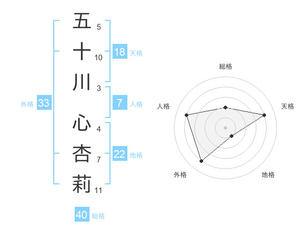 五十川 心杏莉さんを姓名の画数から五運を鑑定