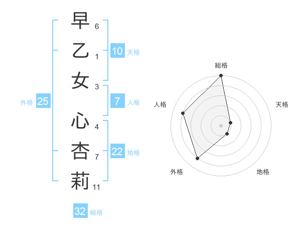 早乙女 心杏莉さんを姓名の画数から五運を鑑定