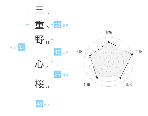 三重野 心桜さんの人格は15画の4点