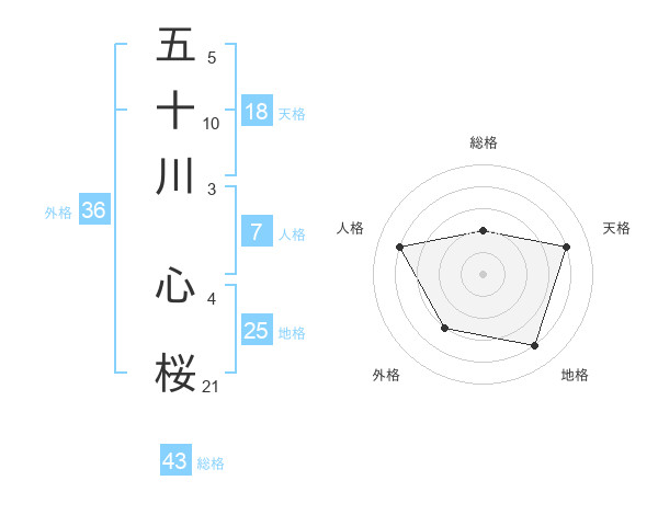 五十川 心桜さんを姓名の画数から五運を鑑定