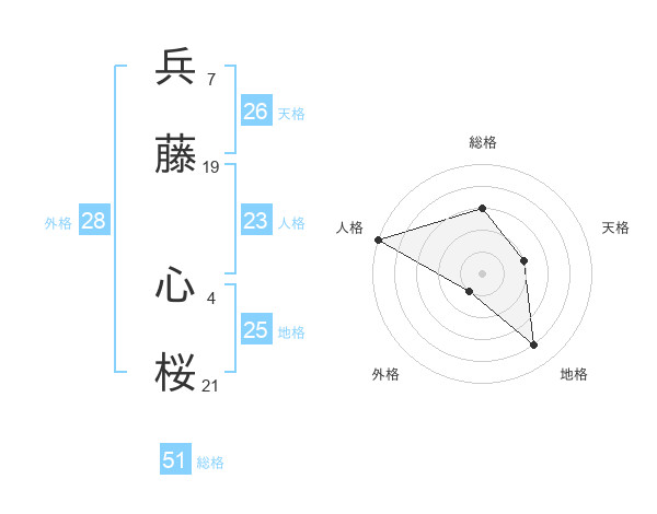 兵藤 心桜さんを姓名の画数から五運を鑑定