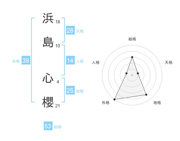 浜島 心櫻さんを姓名の画数から五運を鑑定