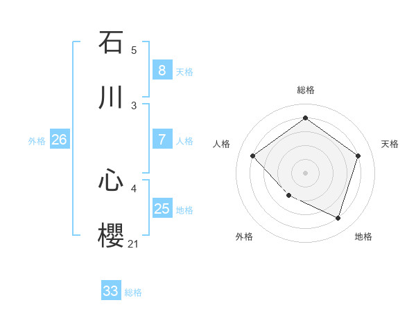 石川 心櫻さんを姓名の画数から五運を鑑定