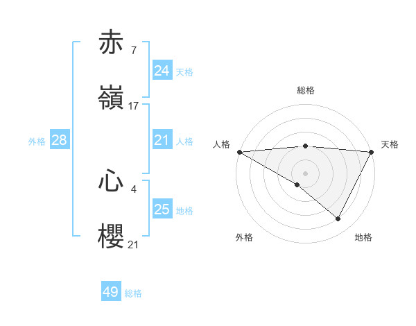 赤嶺 心櫻さんの天格は24画の5点!