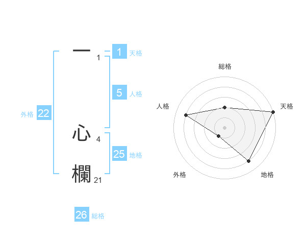 一 心欄さんの総格は26画の2点!