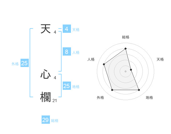 天 心欄さんの総格は29画の4点!