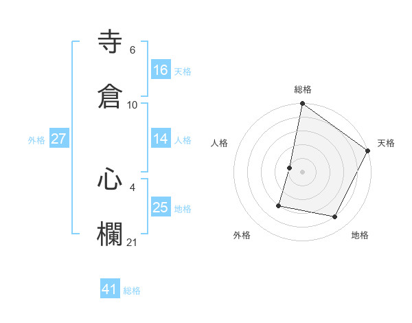 寺倉 心欄さんの天格は16画の5点!