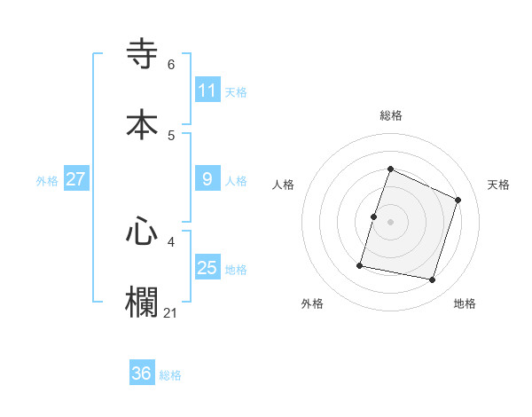 寺本 心欄さんの地格は25画の4点!