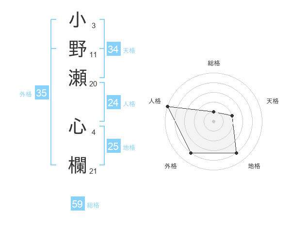 小野瀬 心欄さんを姓名の画数から五運を鑑定
