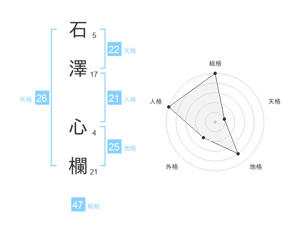 石澤 心欄さんを姓名の画数から五運を鑑定