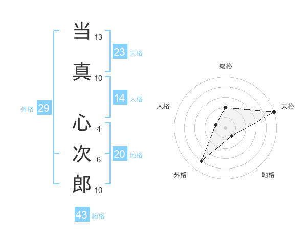 当真 心次郎さんを姓名の画数から五運を鑑定