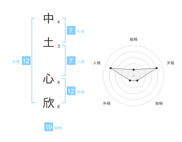 中土 心欣さんの天格は7画の4点!