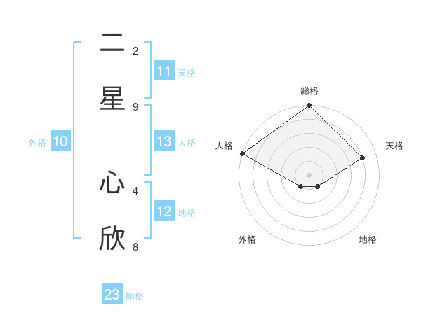 二星 心欣さんの天格は11画の4点!