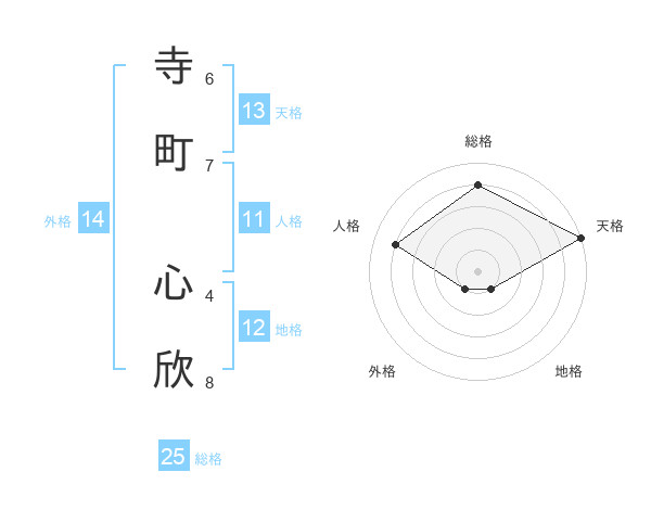 寺町 心欣さんを姓名の画数から五運を鑑定