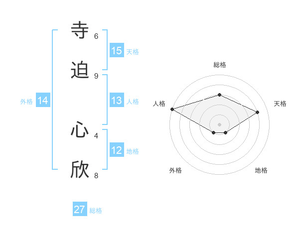 寺迫 心欣さんの天格は15画の4点!