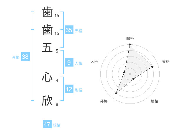 歯歯五 心欣さんの総格は47画の5点!
