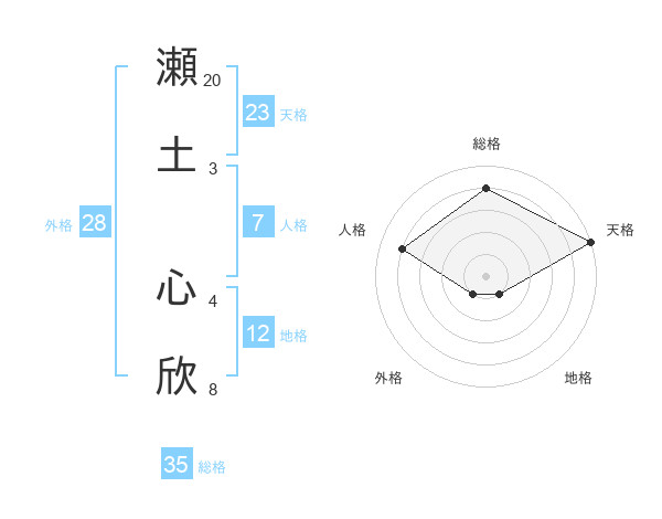 瀬土 心欣さんを姓名の画数から五運を鑑定