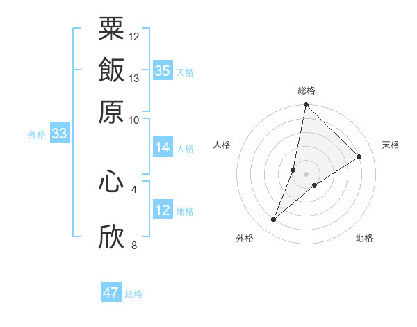 粟飯原 心欣さんを姓名の画数から五運を鑑定
