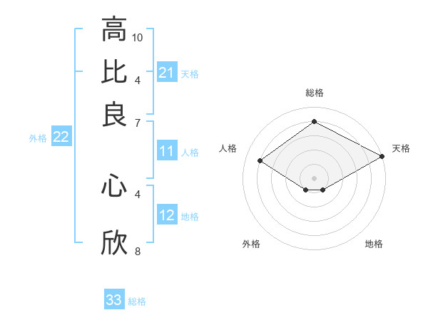 高比良 心欣さんの天格は21画の5点!