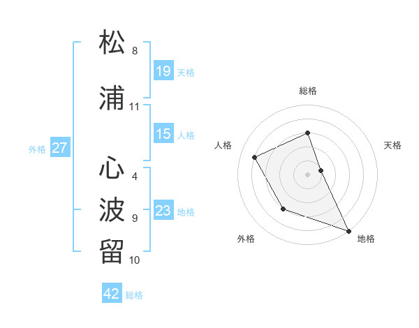 松浦 心波留さんを姓名の画数から五運を鑑定