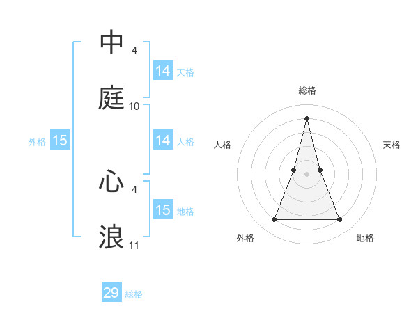 中庭 心浪さんを姓名の画数から五運を鑑定