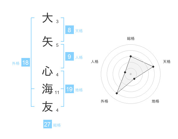 大矢 心海友さんを姓名の画数から五運を鑑定