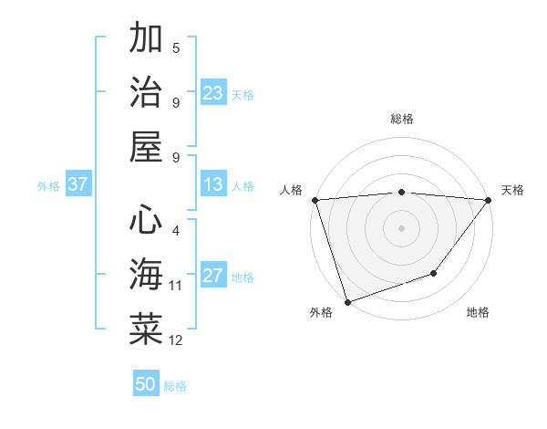 加治屋 心海菜さんの外格は37画の5点