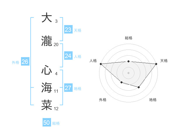 大瀧 心海菜さんを姓名の画数から五運を鑑定
