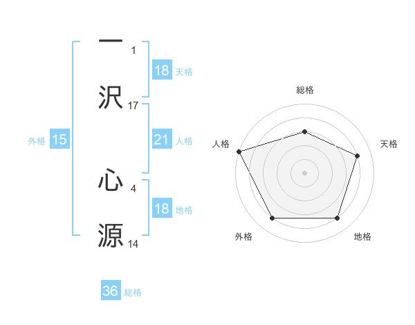 一沢 心源さんの人格は21画の5点!